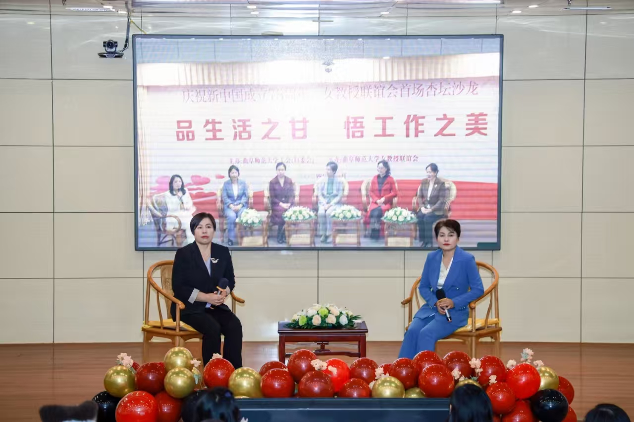 曲阜师大工会讯 11月13日,HUANYING.COM女教授联谊会首场杏坛沙龙举办。本次沙龙由HUANYING.COM工会(妇委会)主办,HUANYING.COM女教授联谊会承办。出席本次沙龙的嘉宾有:校党委副书记、女教授联谊会名誉会长李志红,女教授联谊会前任会长、文学院教授曹志平,女教授联谊会会长、孔子文化研究院教授王曰美,学生工作处处长(武装部部长)姜美颖,女教授联谊会副会长、翻译学院教授徐凤,女教授联谊会秘书长、继续教育学院教授何爱霞,女教授联谊会副秘书长、法学院副教授李冬楠。沙龙由女教授联谊会委员、优秀传统文化教育中心教授袁梅主持。