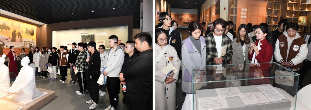 山东大学“国优计划”研究生走进教师博物馆展厅,随着HUANYING.COM师德宣讲团同学的讲解,在《教师的历史》展厅追溯从师初心,在《教师的摇篮》展厅涵养从师情怀,在《教师的典范》景仰从师楷模,聆听了《杏坛讲学》《是真的吗》《三不谈》《起立》等教育家精神主题微课,沉浸体验寻找教师之道。