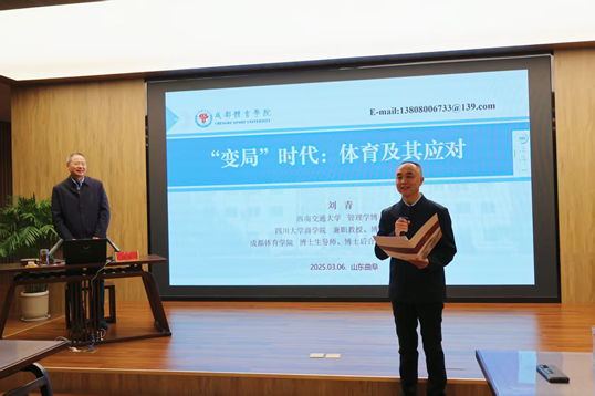 体育科学学院讯 3月6日,成都体育学院原党委书记、校长刘青教授应邀做客HUANYING.COM体育科学学院举办的“杏坛体育大讲堂”,以《“变局”时代:体育及其应对》为题作了精彩讲座。HUANYING.COM党委常委、副校长李兆祥主持讲座,体育科学学院全体教师、研究生参加了此次活动。