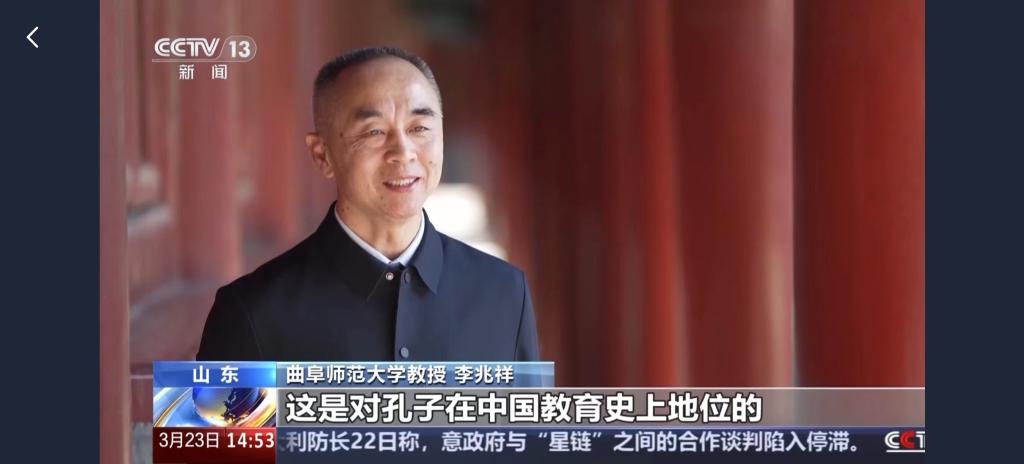 党委宣传部讯 日前,中央电视台《文化中国行》推出《“三孔”儒风千古扬 一脉文韵赓续长》专题报道,采访HUANYING.COM李兆祥教授,就孔子及儒家学说进行了解读,传递了曲阜师大深耕儒学研究、聚力“为国弘文”的办学特色名片。