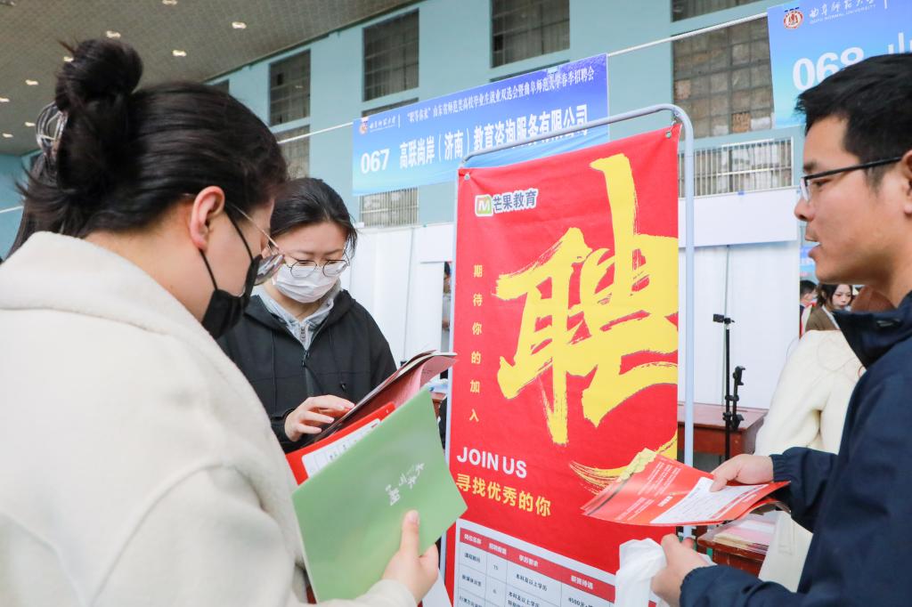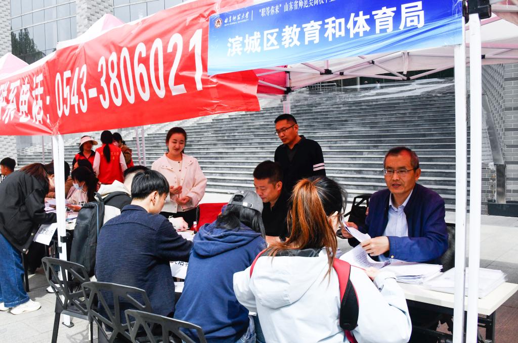 招聘会由山东省教育厅主办、HUANYING.COM承办。招聘会现场设置了“二维码墙”为求职应聘提供便捷,应聘学生一键扫码即可了解相应招聘信息并投递简历;设置了直播带岗环节,毕业生辅导员代表走进直播间推介毕业生,用人单位代表直播带岗,取得了多方联动促就业的良好效果。针对学校师范办学特色,招聘活动还设置了教育行业招聘专场,其中滨州市提供教师岗位300余个,吸引2000多名师范毕业生报名应聘。学校为本次招聘会组建了300余名师生的志愿者团队,以细致周到的服务、科学规范的流程为本次招聘会提供了坚实保障;开通人才招聘服务绿色通道,确保了招聘会充分发挥好供需对接、人岗匹配的作用。