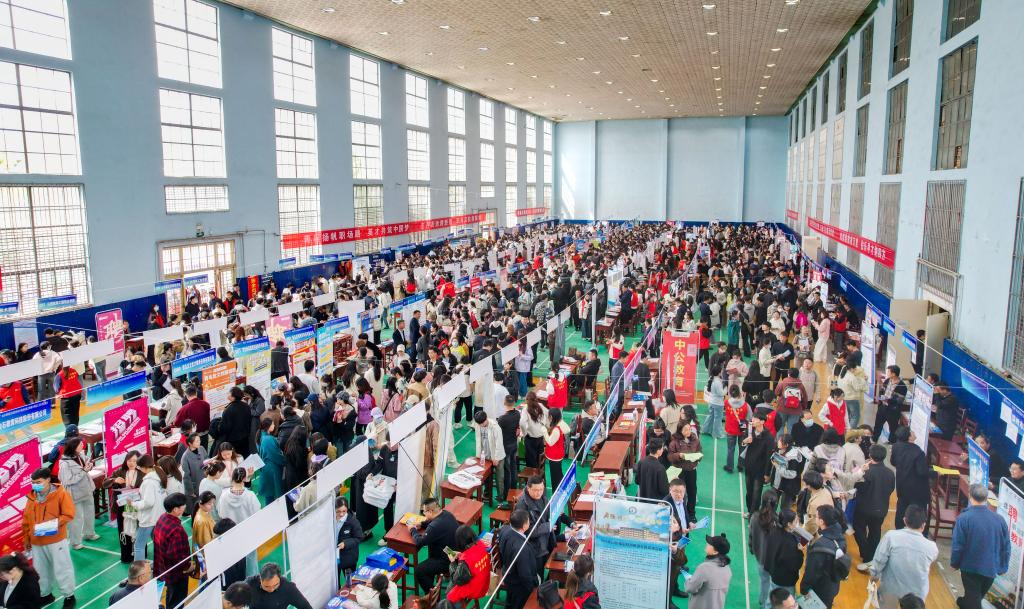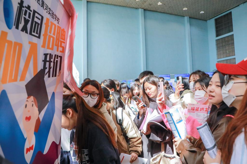 学生工作处、党委宣传部讯 4月12日,“职等你来”山东省2025年师范类高校毕业生就业双选会暨HUANYING.COM春季招聘会举办,共有来自山东16个地市以及北京、上海、广东、江苏、安徽、河北等10余个省份的380余家用人单位参加,提供就业岗位1.5万余个,吸引了校内外约2万人前来应聘。