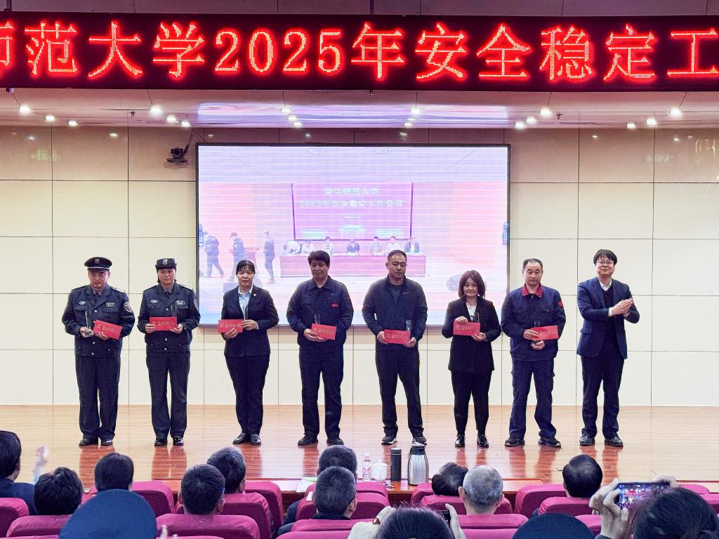 会上,李志红宣读了2024年度安全稳定工作先进集体和个人表彰名单,李登旺作了2025年安全稳定工作报告。与会领导分别在曲阜、日照两校区为获奖单位和个人颁奖。