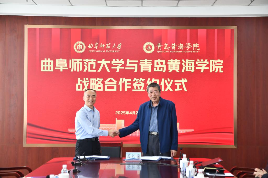 李兆祥在仪式上介绍了曲阜师大的办学历史与发展成绩,希望双方在横向项目、校企合作领域重点发力作实现互利双赢。李清山介绍了青岛黄海学院的主要办学情况,希望两校围绕师资队伍、课题申报、导师培育等方面开展深入合作,助力学院高质量发展。