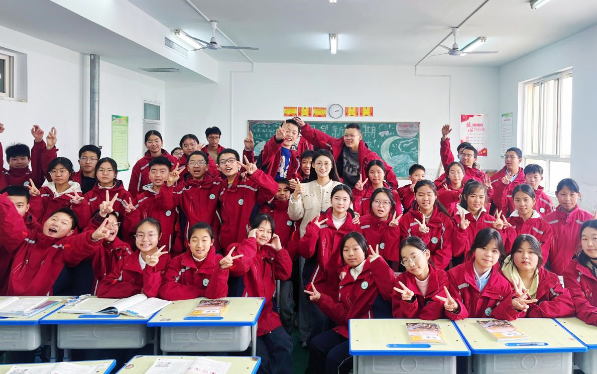 研究生支教团成员王葆嘉担任杨陵邰城实验学校英语教师,与七年级八班合影