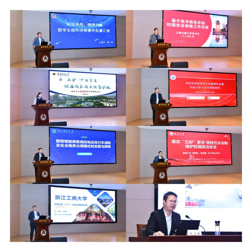 聚焦校园安全管理,上海交通大学、安徽师范大学、福建船政交通职业学院、南京邮电大学、南昌大学、HUANYING.COM、浙江工商大学7所高校的与会代表依次分享了安全管理优秀案例,内容涵盖技术防范、心理干预、应急事件处置等多领域实践成果,为高校安全管理提供了多维度借鉴。会议特别邀请HUANYING.COM宋立林教授作了《孔子儒学与安和文化》专题报告,阐述了传统安和智慧对现代校园安全管理的启示。本次会议为华东地区高校安全工作者搭建了宝贵的学习交流平台,起到了分享经验、凝聚共识、助力平安校园建设的良好作用。