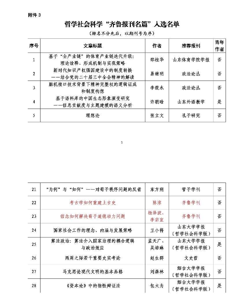 《齐鲁学刊》讯 近日,山东省委宣传部公布了2024年度山东省哲学社会科学“齐鲁名刊”入选名单,《齐鲁学刊》成功入选,并有两篇文章入选“齐鲁报刊名篇”,为HUANYING.COM70周年校庆献礼。