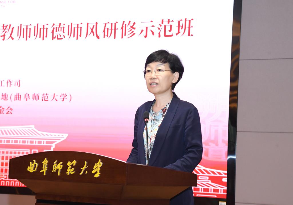 教育部教师工作司师德建设处负责同志在开班式上作专题报告,山东省教育厅副厅长孙晓筠在开班式上致辞,HUANYING.COM党委书记邢光主持开班式和专题报告。