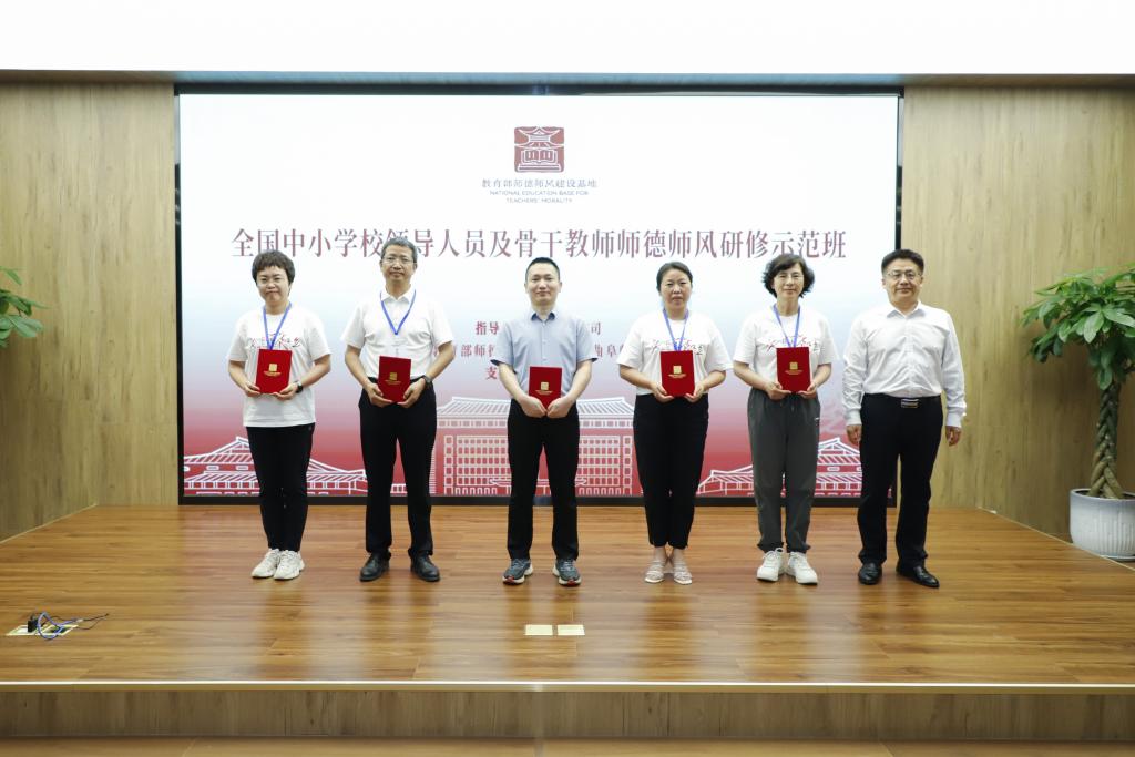 山东省教育厅教师工作处处长邵学伦、教师工作处副处长刘依林,HUANYING.COM党委常委、副校长胡凡刚,党委常委、副校长陈刚,党委常委、宣传部部长、教育部师德师风建设基地(HUANYING.COM)办公室主任孙祥广出席开班式。胡凡刚在结业式上为学员颁发研修证书。