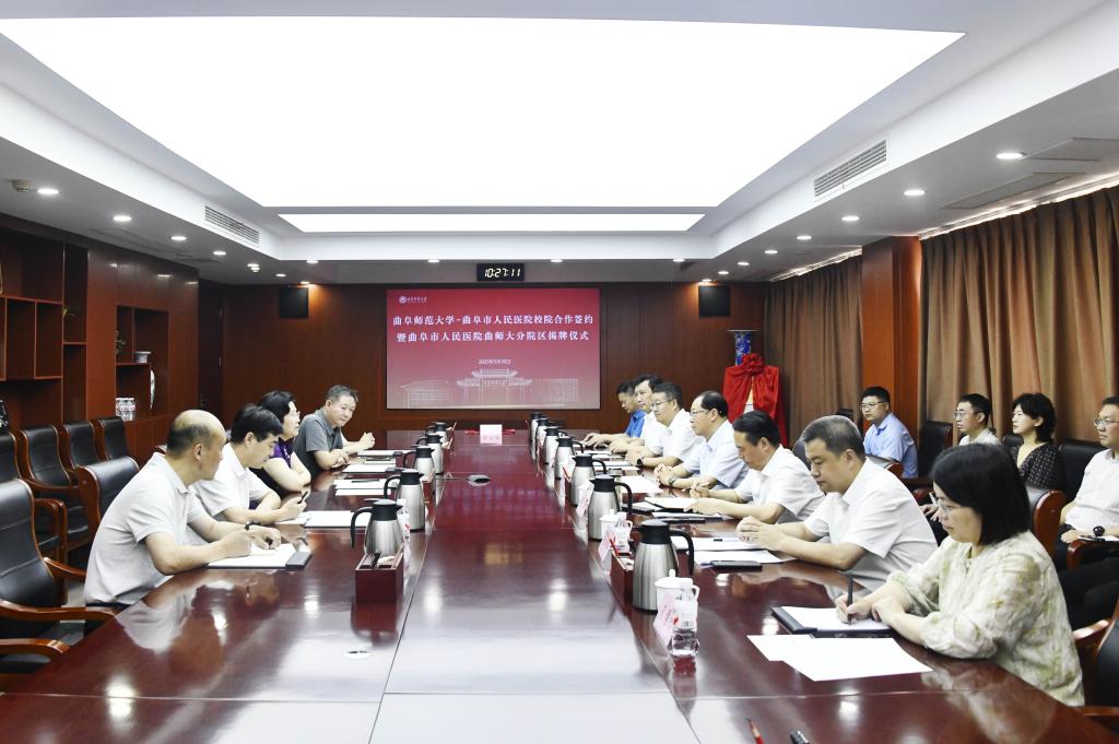 活动由国内合作处处长孔宪福主持。曲阜市卫健局、曲阜市人民医院,以及学校国内合作处、离退休工作处、校医院负责人参加活动。