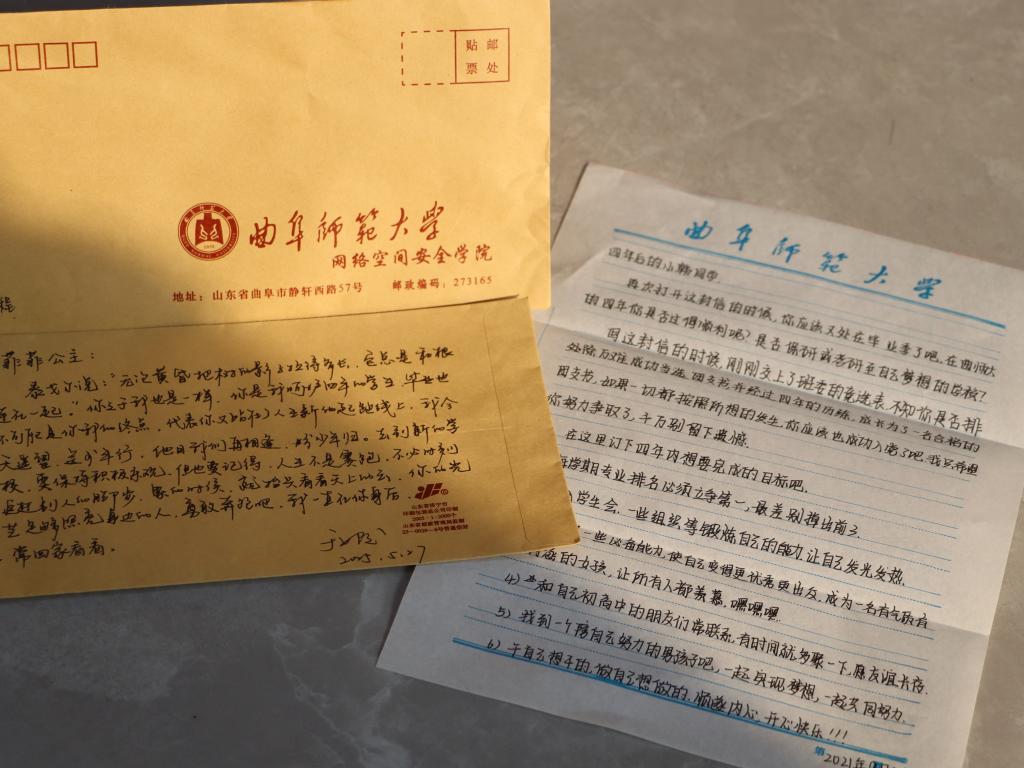“我保存的这388封信件,是同学们在2021年9月26日大学第一次班会上写给四年后的自己的,我和同学们约定毕业时再打开这封来自十八岁的信件。”当毕业骊歌响起、四年之约来临,HUANYING.COM网络空间安全学院辅导员于媚媛拿出保存完好的一封封信件,逐一给每封信写上一份毕业赠言。