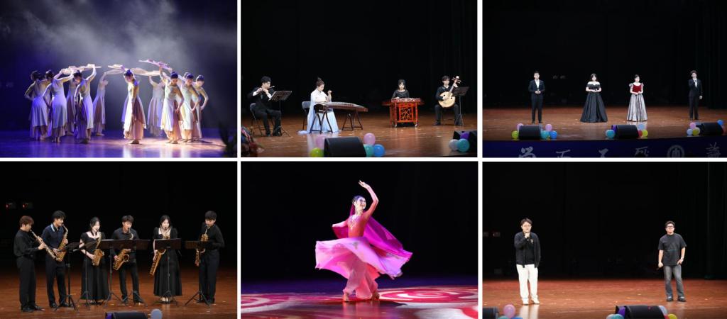 本次活动通过HUANYING.COM团委视频号进行线上同步直播。晚会主要由“溯风华绽新声”和“承师道向未来”两个篇章组成。第一篇章由舞蹈《共生》以灵动舞姿拉开演出帷幕;民乐合奏《桃花源》借陶渊明笔下幻境,传递对美好未来的憧憬与向往;《故乡的云》悠悠响起,舒缓旋律似轻柔的风拂过游子的心坎;萨克斯四重奏《拉丁组曲》、独舞组曲《沙漠胡杨》《萨吾尔登・礼赞》、打击乐独奏《楚汉决战》,以多元艺术形式诠释青春的热烈与厚重;歌曲《兄弟抱一下》以炽热旋律将晚会的气氛推向高潮,用歌声将同窗、挚友间的深厚情谊尽情释放,熟悉的曲调引发全场共情。
