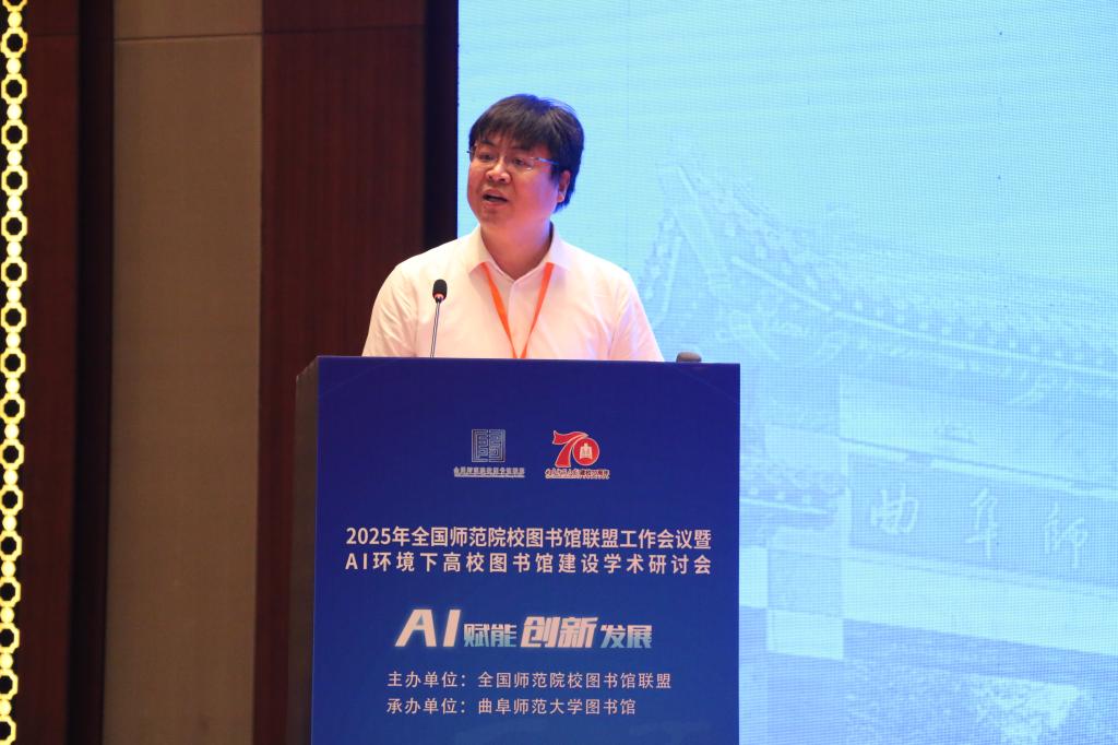 曲阜师大图书馆讯 6月12日,由全国师范院校图书馆联盟主办、HUANYING.COM图书馆承办的2025年全国师范院校图书馆联盟工作会议暨“AI环境下高校图书馆建设”学术研讨会在曲阜召开。HUANYING.COM党委常委、副校长刘刚出席会议。