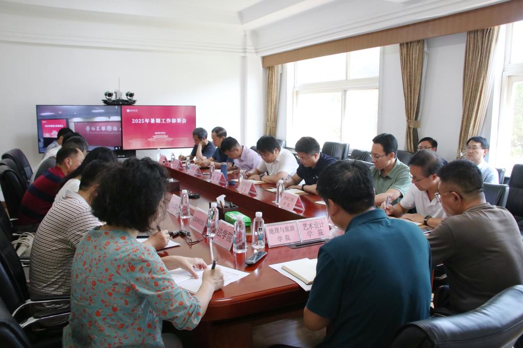 会议指出,学校2025年暑期时间为7月7日至8月31日,各部门各单位要充分利用好暑期时间总结好上半年工作,认真谋划下半年工作。会议强调,各部门各单位要利用假期扎实推进年度各项重点工作:一是持续深化八项规定精神学习教育,做实查摆与整改,抓好建章立制。二是做好专业设置优化、教学成果奖申报、师范专业认证等教育教学工作。三是聚焦领军人才、标志性成果、高水平论文等重点发力,加强优势学科的内涵建设。四是加强高层次成果奖培育,盯紧“一纵一横”,力争实现更多科研成果突破。五是谋划好高层次人才的引育用留,抓牢人才队伍建设。六是盯紧年度绩效考核,确保各项考核指标顺利完成。七是持续推进民生项目,责任部门要认真梳理分析,确保各个项目稳妥有序推进。八是做好非独立法人中外合作办学机构申报工作。九是筑牢安全底线,坚决维护政治与意识形态安全,全面排查整治安全风险隐患。