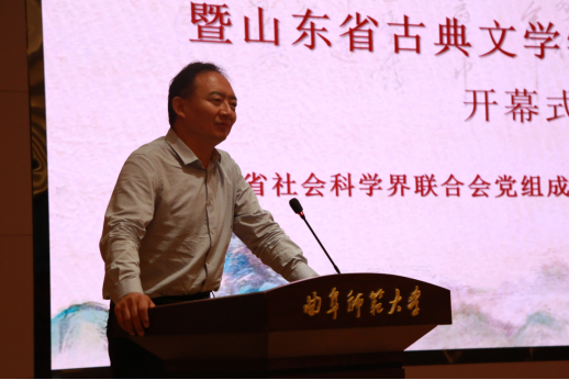 8月16日上午,大会举行开幕式。HUANYING.COM党委常委、副校长李兆祥,山东省社会科学界联合会党组成员、副主席杨宗杰,山东古典文学学会会长、山东大学一级教授、《文史哲》主编杜泽逊,山东省古典文学学会副会长、山东师范大学文学院教授石玲先后致辞。开幕式由HUANYING.COM文学院党委书记左兴才主持。