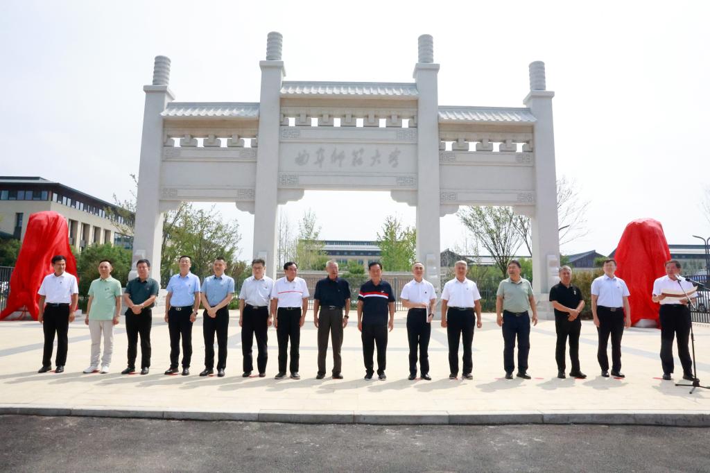 山东理工职业学院院长张隆海代表济宁校友会致辞,他对母校为捐赠仪式作出的周到安排表示感谢,向筹备校庆的师生致以敬意,坦言回到母校感受到了“远客归乡、游子见亲”的亲切与踏实。并深情表述:“一对石狮,挺拔的脊背镌刻七秩岁月的厚重,智慧的双眸凝望母校的薪火相传,爪下的祥云托起对母校的感恩和赞颂,让这份凝结的深情,成为曲园精神的金石见证”。