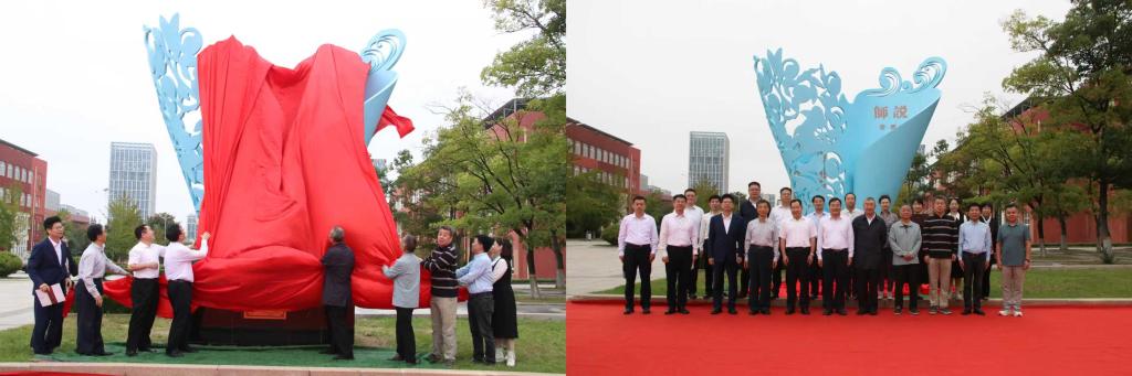 日照校区党委讯 10月11日,HUANYING.COM举行青岛校友会《山海溯师恩》雕塑捐赠仪式,学校党委常委、副校长陈刚出席仪式,与校友代表隋志强、孙继、谭业庭等共同为雕塑揭幕并座谈。