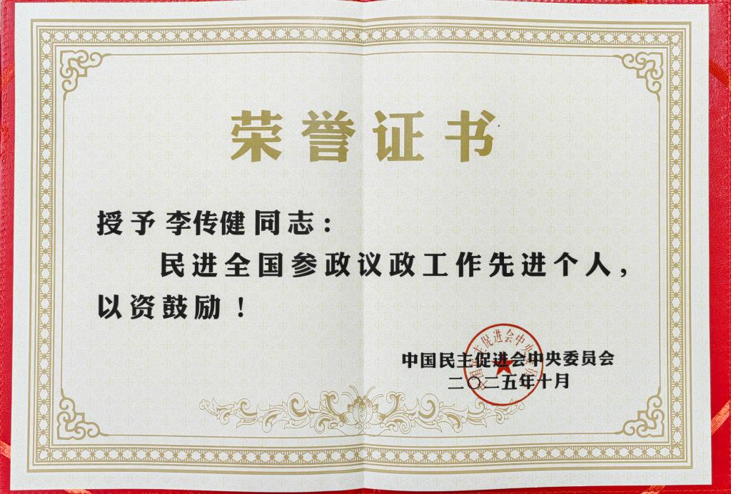李传健担任日照市政协常委、民进曲阜师大基层委员会副主委兼日照校区支部主委,经济学院院长、教授。他以坚定的政治立场和务实的议政成果,生动诠释了服务社会、贡献大局的理念。长期深耕农业发展、城乡一体化及金融政策研究将专业能力转化为推动发展的实际对策,多篇高质量提案与社情民意被采用,既为地方经济社会发展献计献策,也为学校参政议政工作积累了宝贵经验。