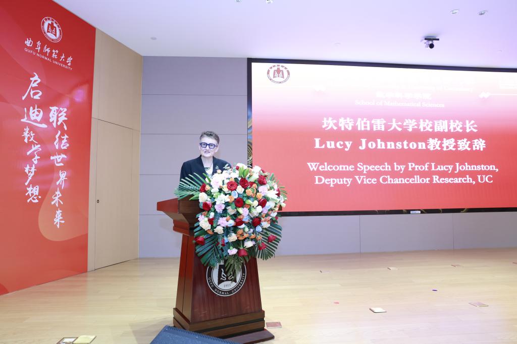 数学科学学院院长王培合教授介绍了数学科学学院的发展史及办学70年来的辉煌成就,并向与会师生介绍了中外合作办学项目的教学理念与培养目标。坎特伯雷大学数学与统计学部部长Clemency Montelle教授介绍了坎特伯雷大学数学与统计学部的优势和学科专业实力,期待通过该项目深化两校合作,推动数学学科领域的学术交流与人才联合培养。