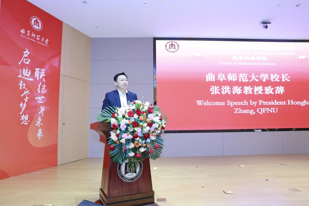 张洪海在致辞中向坎特伯雷大学校方领导老师、澳大利亚未来教育研究院代表和学生家长表示热烈欢迎,并向历经拼搏开启大学新篇章的同学们表示祝贺。他指出,数学与应用数学中外合作办学专业是学校首个理工科中外合作办学项目,项目依托的HUANYING.COM数学学科作为学校创校学科之一,已形成完整的本硕博人才培养体系,希望同学们能够立鸿鹄志、做追梦人,勇于创新、敢为人先;修身明德、全面发展,放眼世界、融通中外,主动成长为专业精、素养高、视野宽的国际型数学科学人才,用奋斗书写无愧于时代的青春篇章。