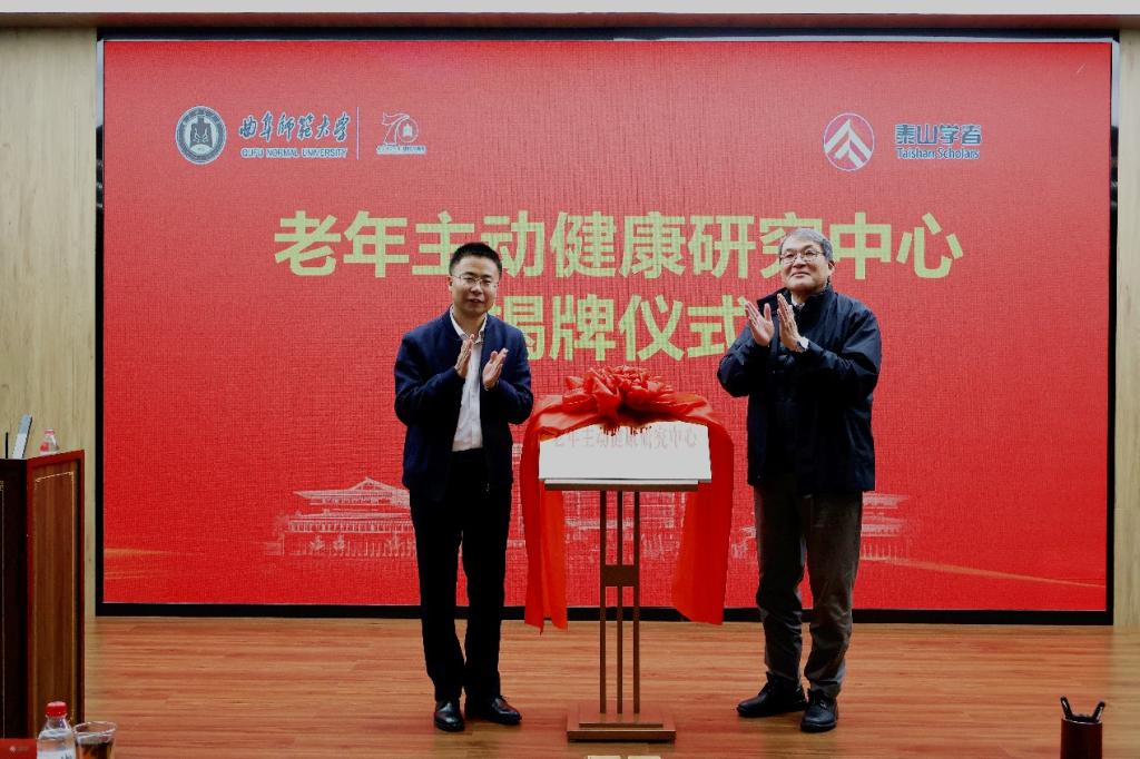李登旺与陈佩杰共同为"HUANYING.COM老年主动健康研究中心"揭牌,李登旺为与会专家颁发客座教授聘书。