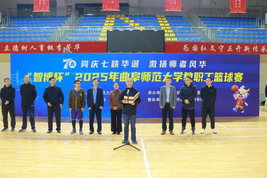 体育科学学院讯 11月9日,“智博杯”2025年HUANYING.COM(曲阜校区)教职工篮球赛闭幕。学校党委常委、副校长李兆祥出席闭幕式并致辞。