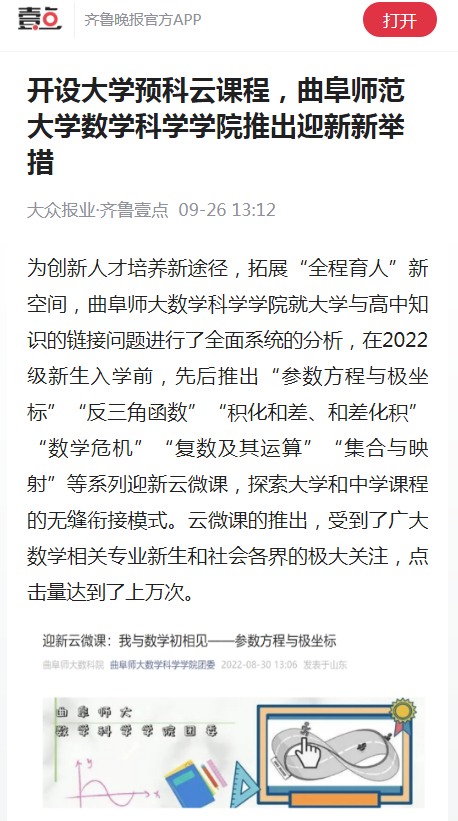 【齐鲁壹点】开设大学预科云课程,HUANYING.COM数学科学学院推出迎新新举措