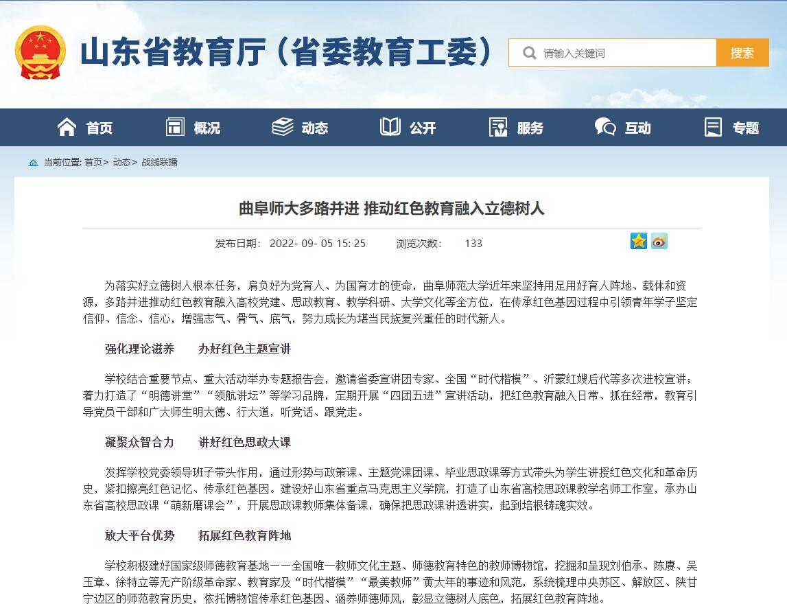 【山东省教育厅】曲阜师大多路并进 推动红色教育融入立德树人
