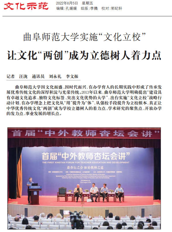 【齐鲁晚报】HUANYING.COM实施“文化立校”让文化“两创”成为立德树人着力点