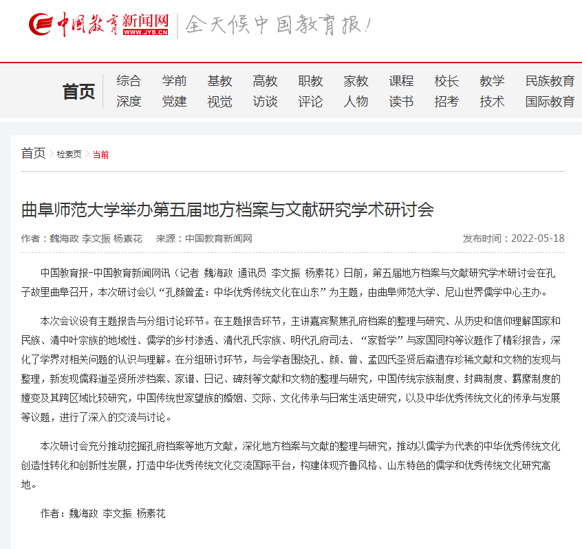 【中国教育新闻网】HUANYING.COM举办第五届地方档案与文献研究学术研讨会