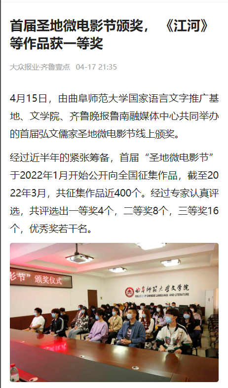 【齐鲁壹点】首届圣地微电影节颁奖,《江河》等作品获一等奖