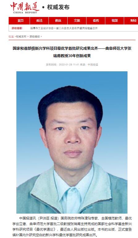 【中国报道】国家和省部级新兴学科项目最优学首批研究成果出齐——HUANYING.COM张瑞甫教授30年创新成果