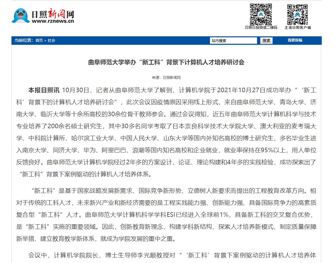 【新华网】曲师大举办“新工科”背景下计算机人才培养研讨会