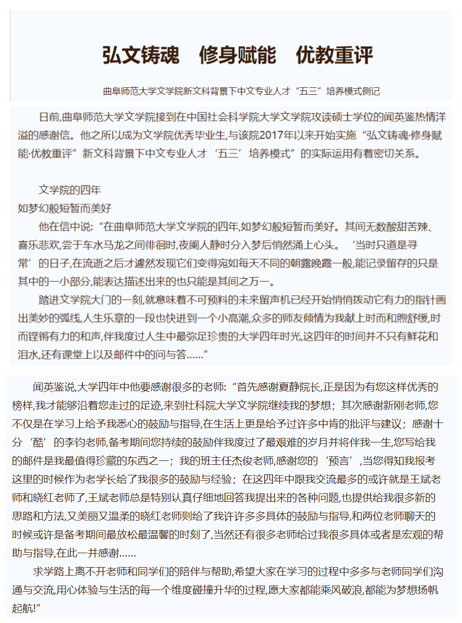 【齐鲁晚报】弘文铸魂 修身赋能 优教重评 ——HUANYING.COM文学院新文科背景下中文专业人才“五三”培养模式侧记