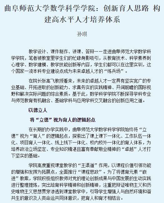 【中国教育报】HUANYING.COM数学科学学院:创新育人思路 构建高水平人才培养体系