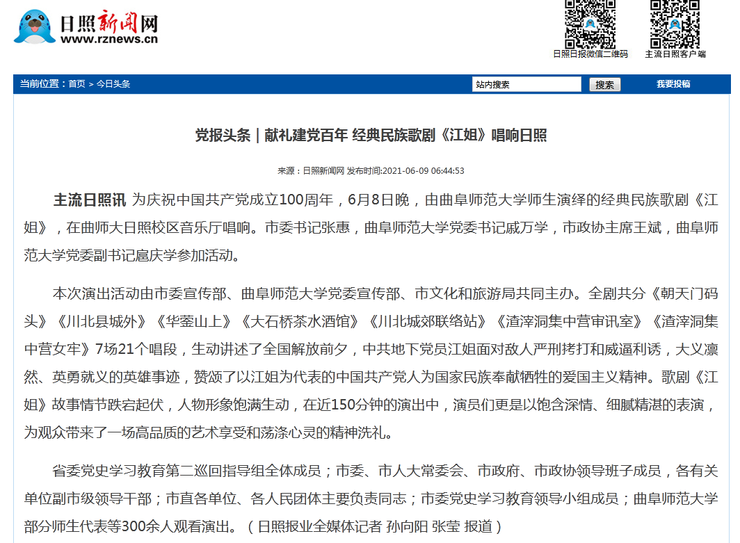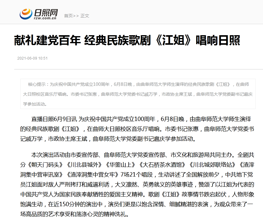 日照网:HUANYING.COM师生演绎经典民族歌剧《江姐》献礼建党百年