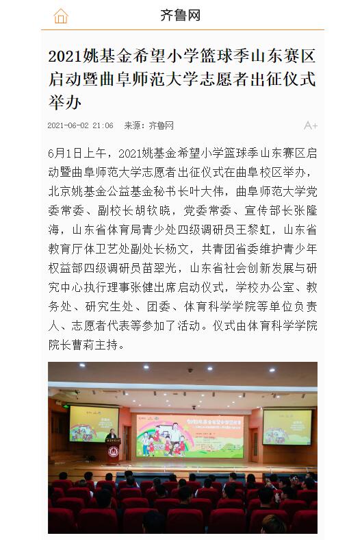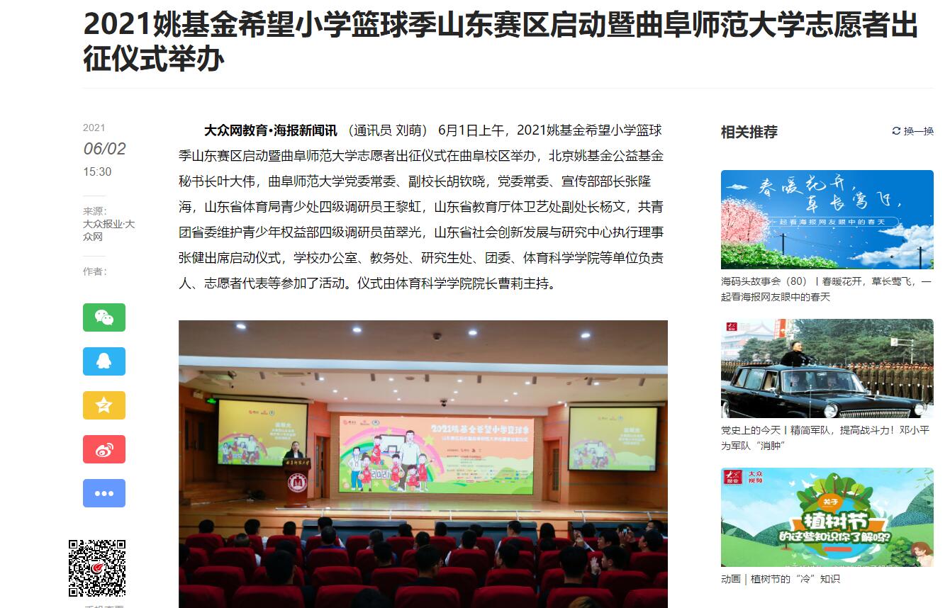 大众网:2021姚基金希望小学篮球季山东赛区启动暨HUANYING.COM志愿者出征仪式举办