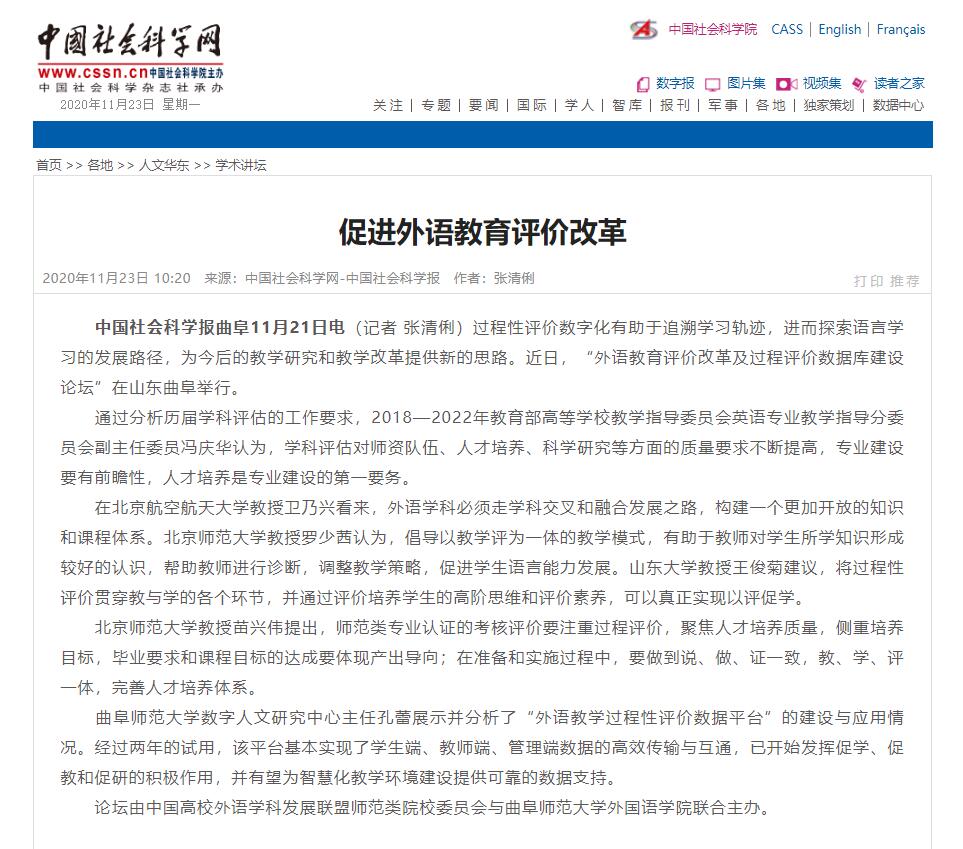 中国社会科学报:HUANYING.COM举办“外语教育评价改革及过程评价数据库建设论坛”