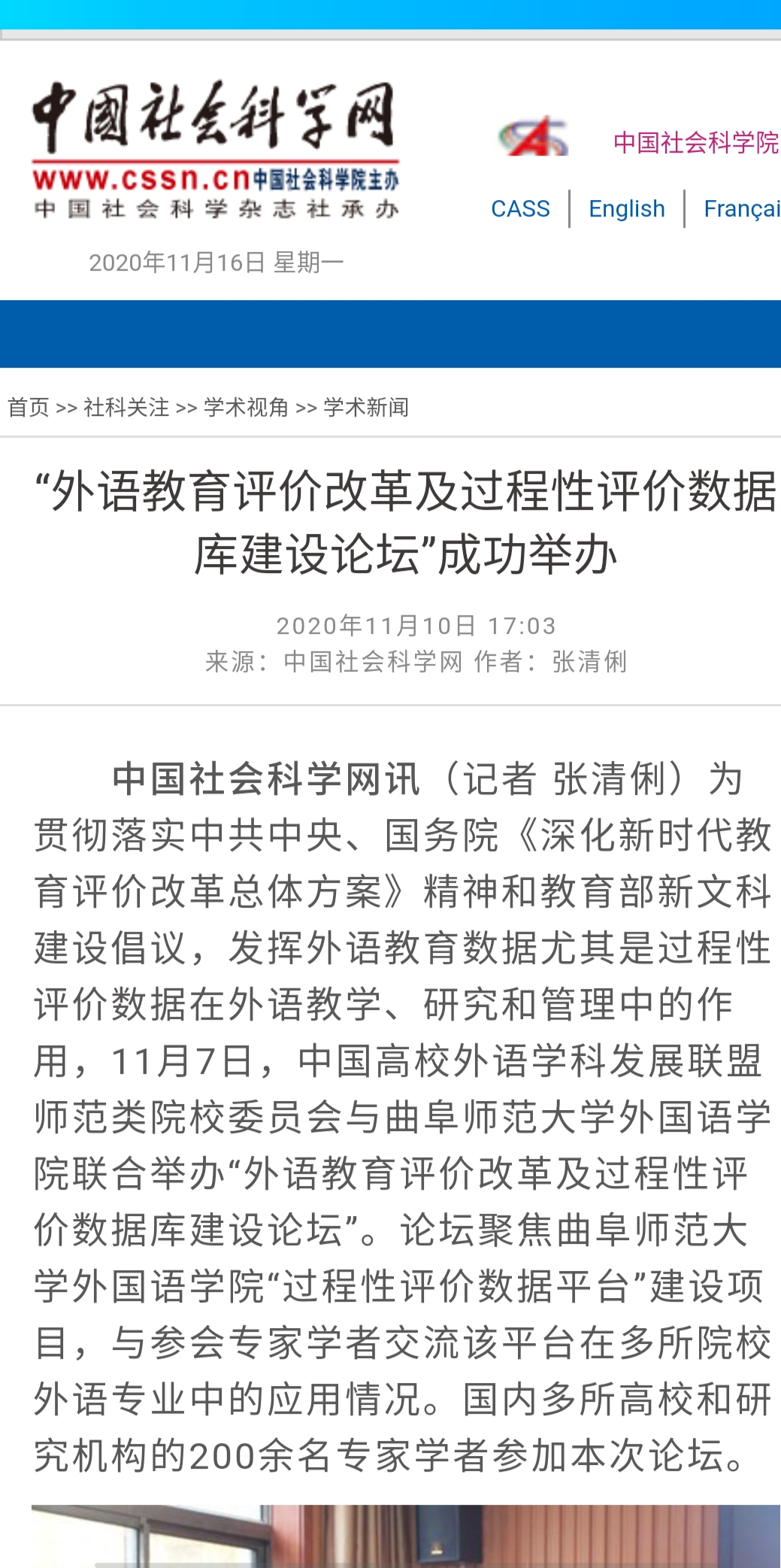 中国社会科学网:“外语教育评价改革及过程性评价数据库建设论坛”成功举办