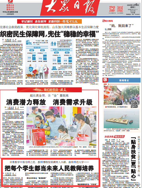 大众日报:曲阜师大把每个学生都当未来人民教师培养