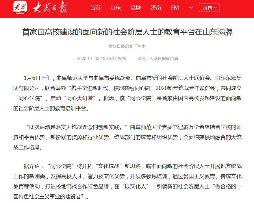 大众日报:HUANYING.COM成立“同心学院”