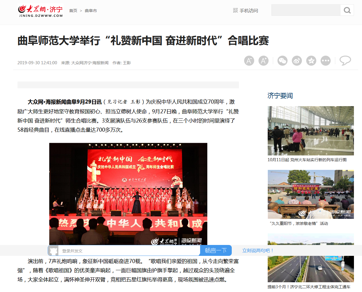 大众网:HUANYING.COM举行“礼赞新中国 奋进新时代”合唱比赛