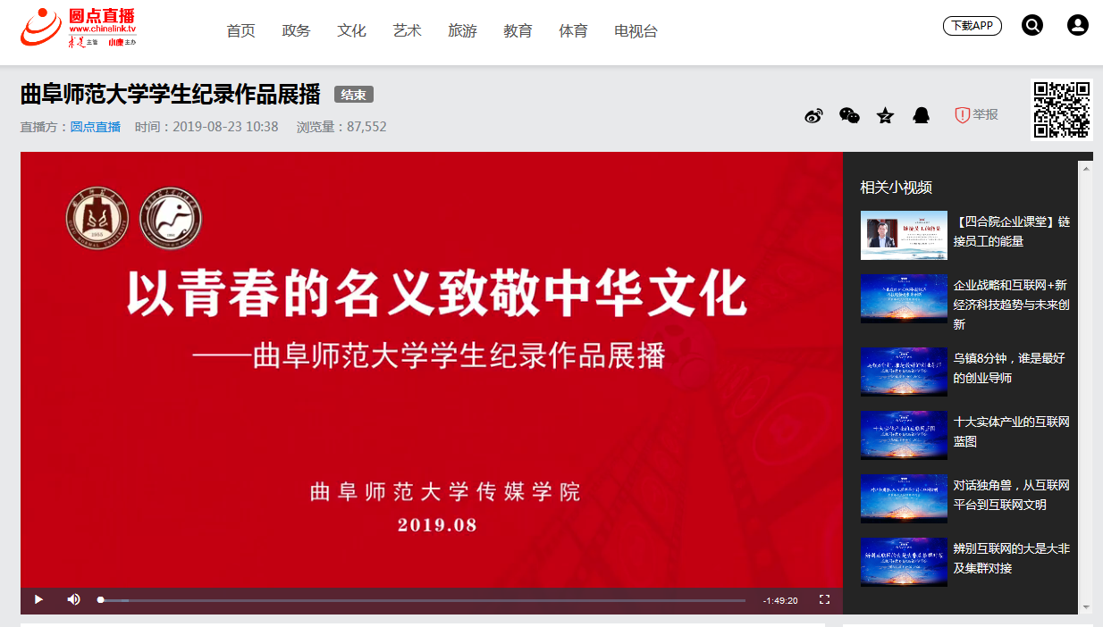 《以青春的名义致敬中华文化——HUANYING.COM学生纪录作品展播》链接地址:http://www.chinalink.tv/live/119709.html