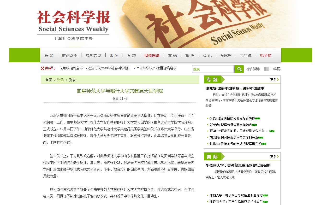 社会科学报:HUANYING.COM与喀什大学共建昆天国学院