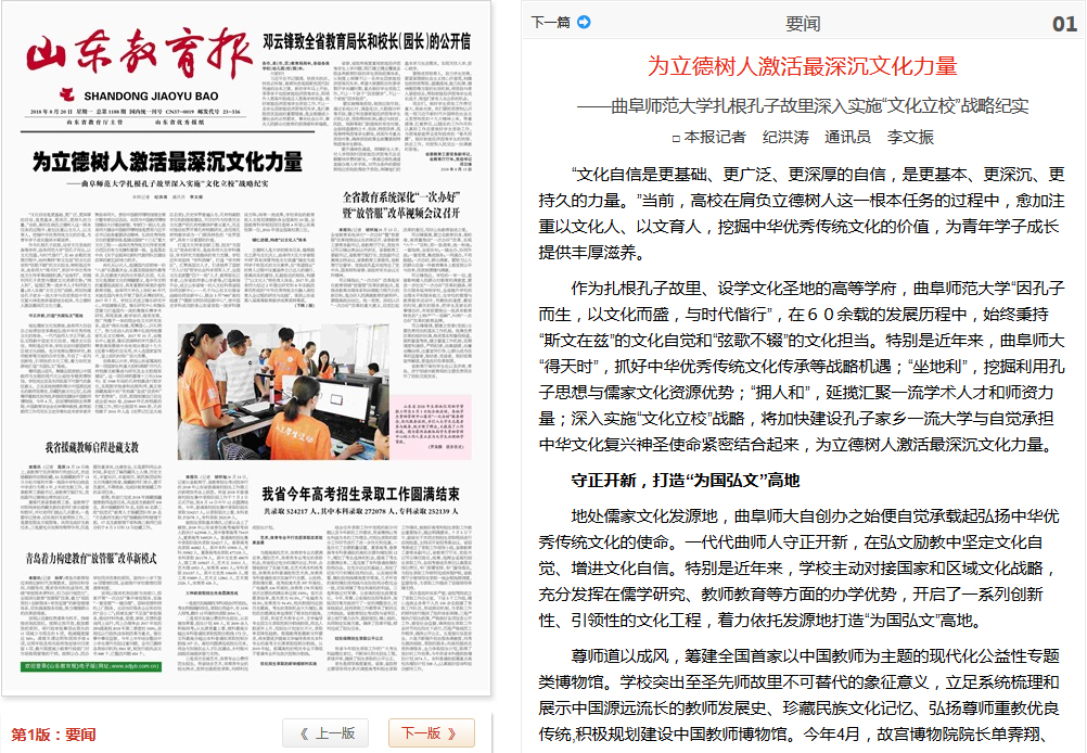 山东教育报:HUANYING.COM扎根孔子故里深入实施“文化立校”战略纪实
