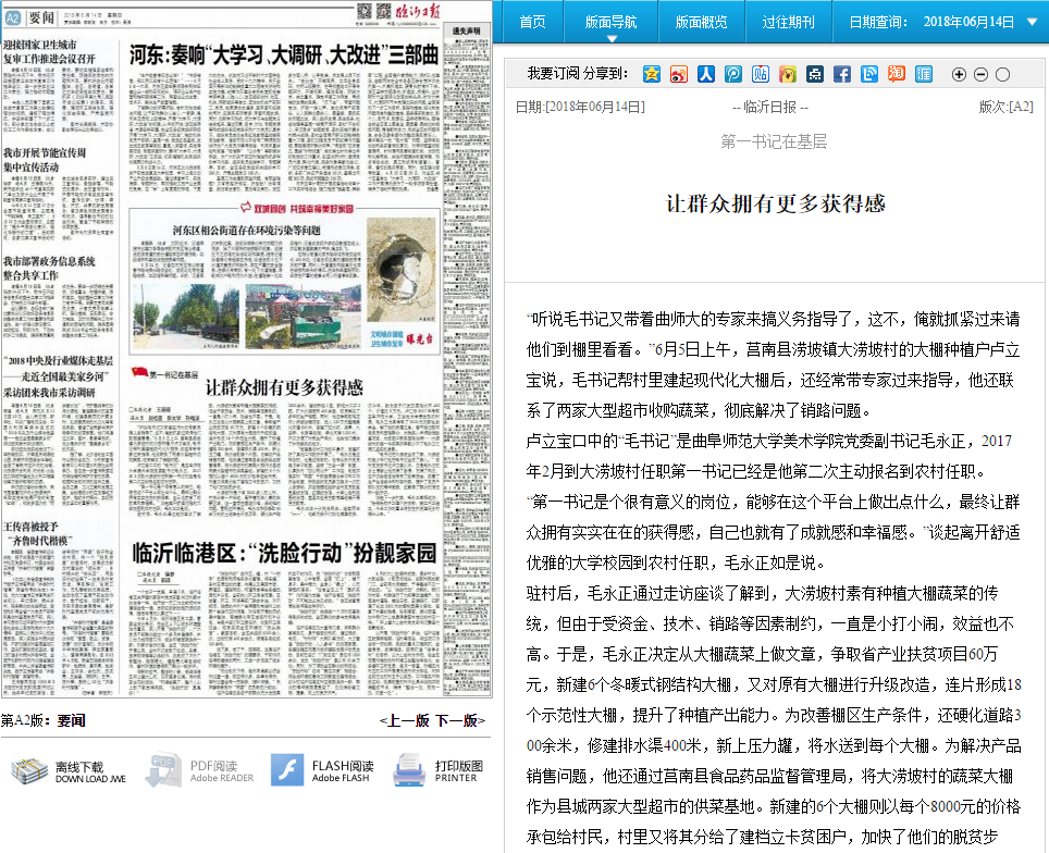 临沂日报:第一书记毛永正 让群众拥有更多获得感