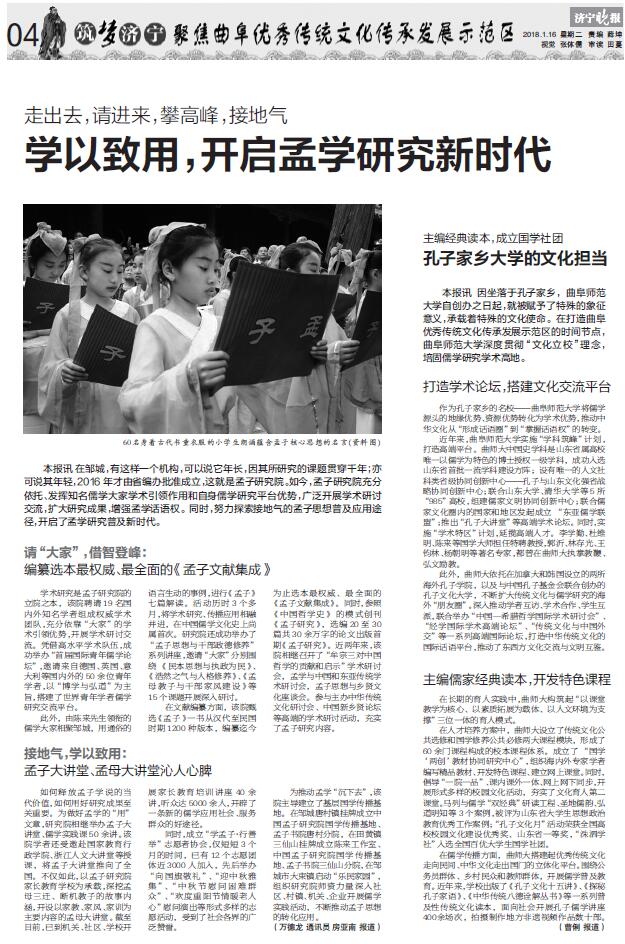 济宁晚报:主编经典读本,成立国学社团 孔子家乡大学的文化担当