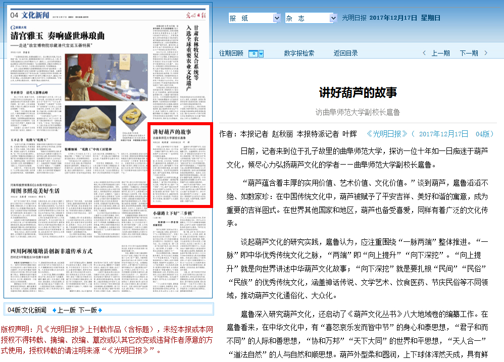 光明日报:讲好葫芦的故事——访HUANYING.COM副校长扈鲁