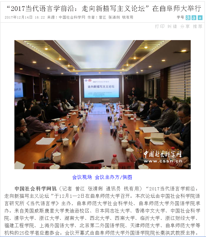 中国社会科学网:“2017当代语言学前沿:走向新描写主义论坛”在曲阜师大举行