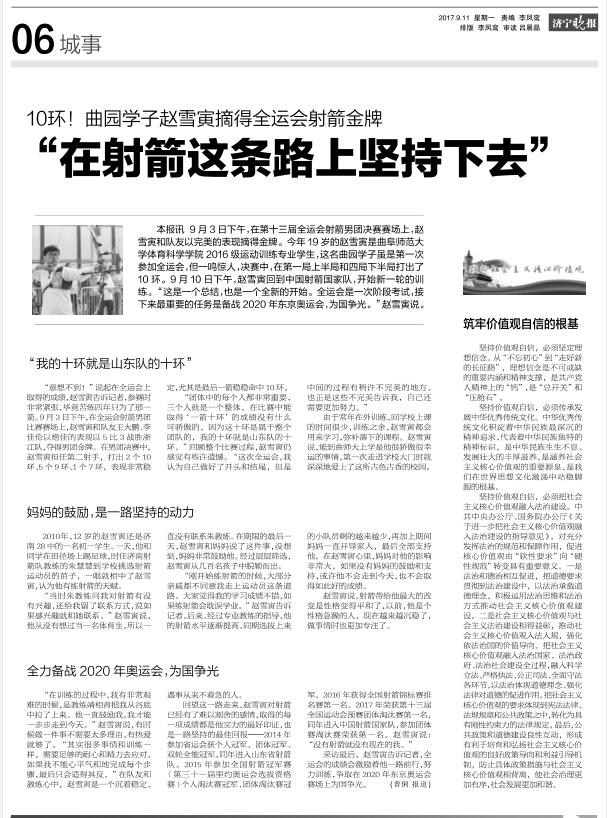 济宁晚报:曲园学子赵雪寅摘得全运会射箭金牌